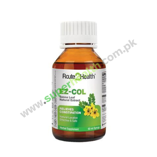 EZ COL SYRUP 60ML is a pharmaceutical product that contains a natural extract of Senna leaf. Each 60ml bottle of syrup contains the Senna leaf extract. Senna is a plant-based ingredient known for its laxative properties. The syrup is formulated to provide relief from constipation and promote bowel movements.